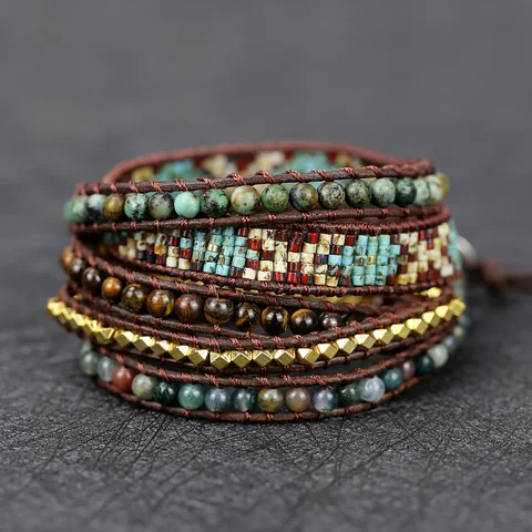 2021 High quality lovers Natural Stones 5 Strands Wrap Bracelets friendship luxury glass beads Handmade braid Boho jewelry