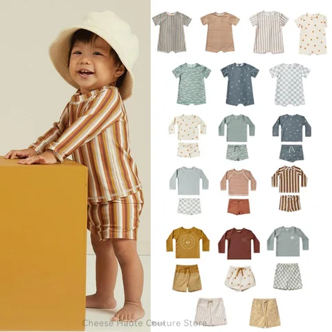 RC Baby Boys Swimwears 1-12Y New Summer Brand Kids Simple Floral Striped Pattern Infant Learning 2022 Swimming Bathing Suits