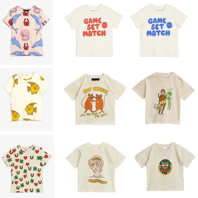 2021 New Summer Mini Kids T-shirts Baby Girls Clothes Cartoon Short Sleeve Toddler Christmas Shirt Striped Shirt Boys Tops Tees