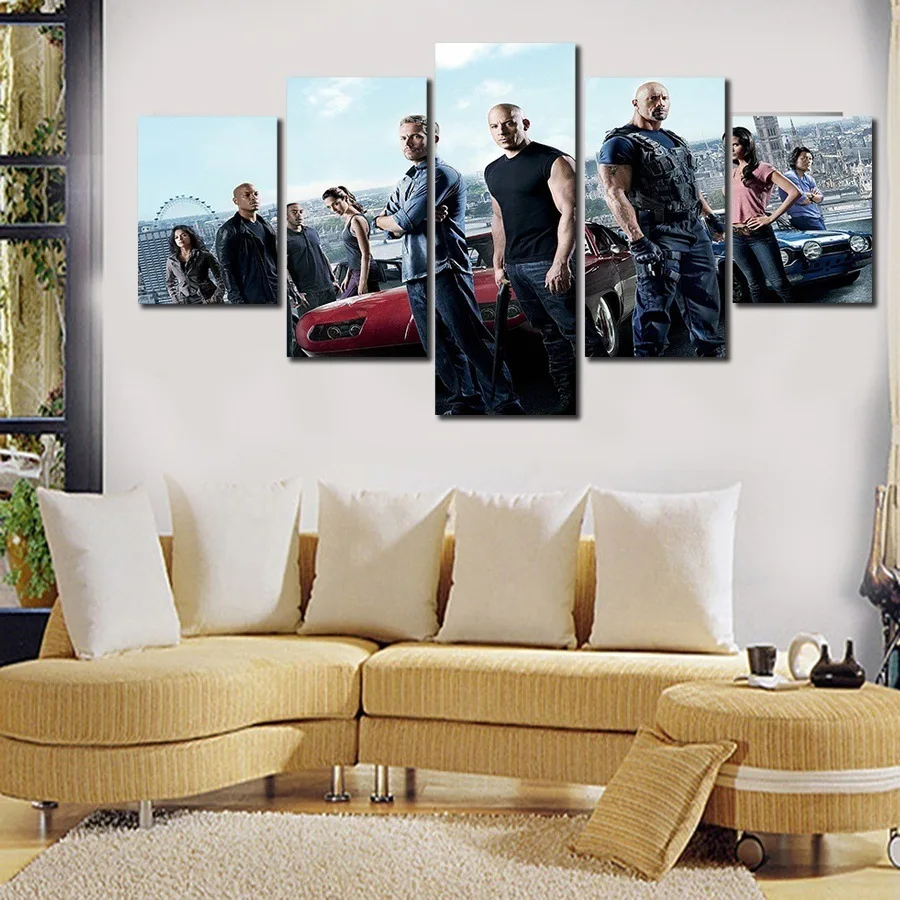 5 Pieces Wall Arts Canvas Fast Furious Sports Race Car Posters Picture Paintings Living Room Bedroom Mural Print Home Decoration