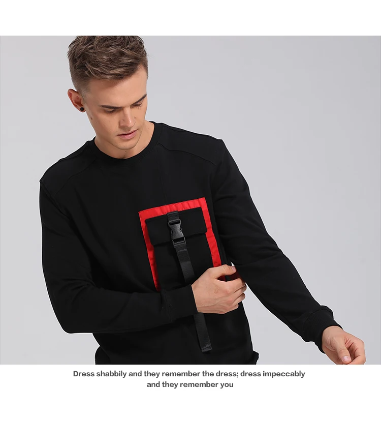 AlexPlein Round Neck Sweatshirt Men's Fashion Clothing Basic 100% Cotton 2022 Winter Plain Pocket High Quality Leisure Wear Hot