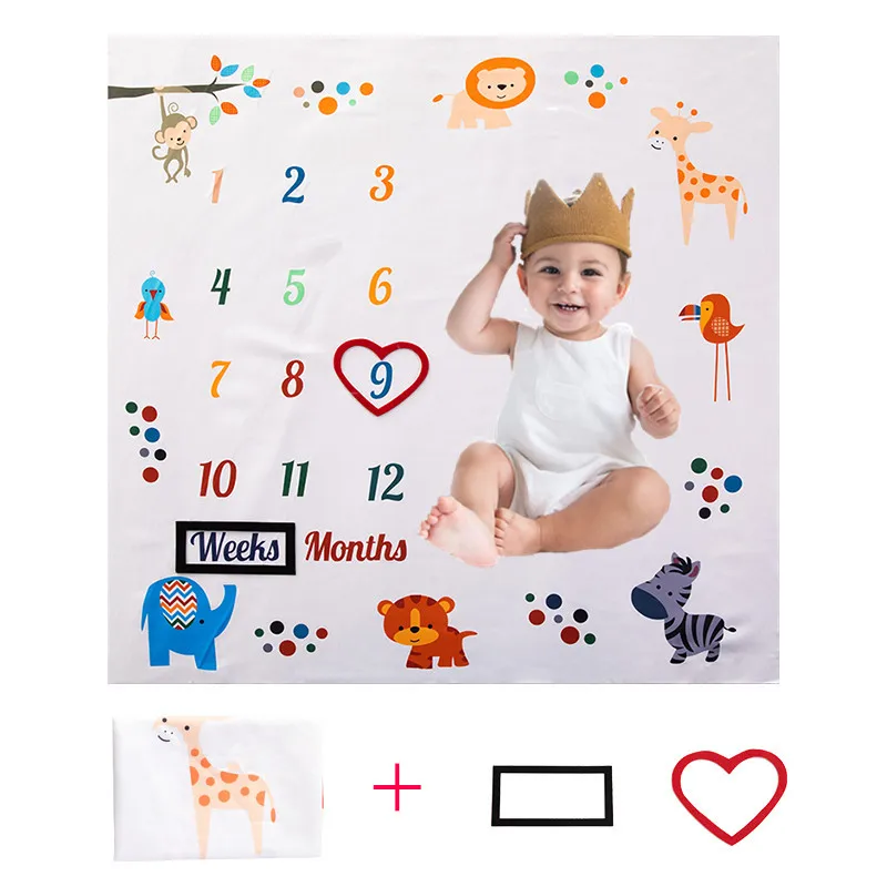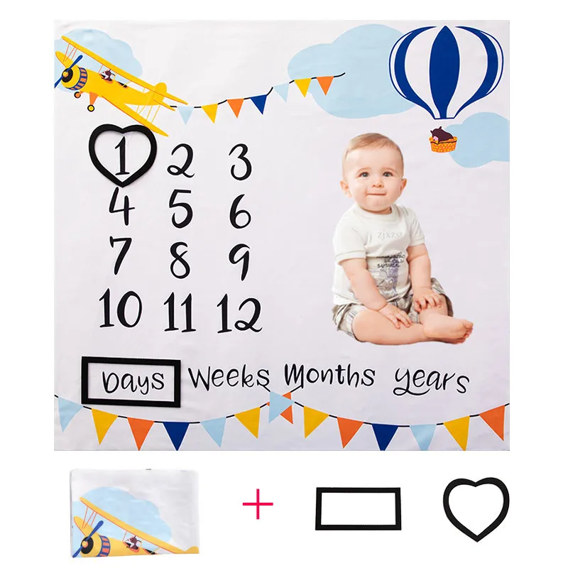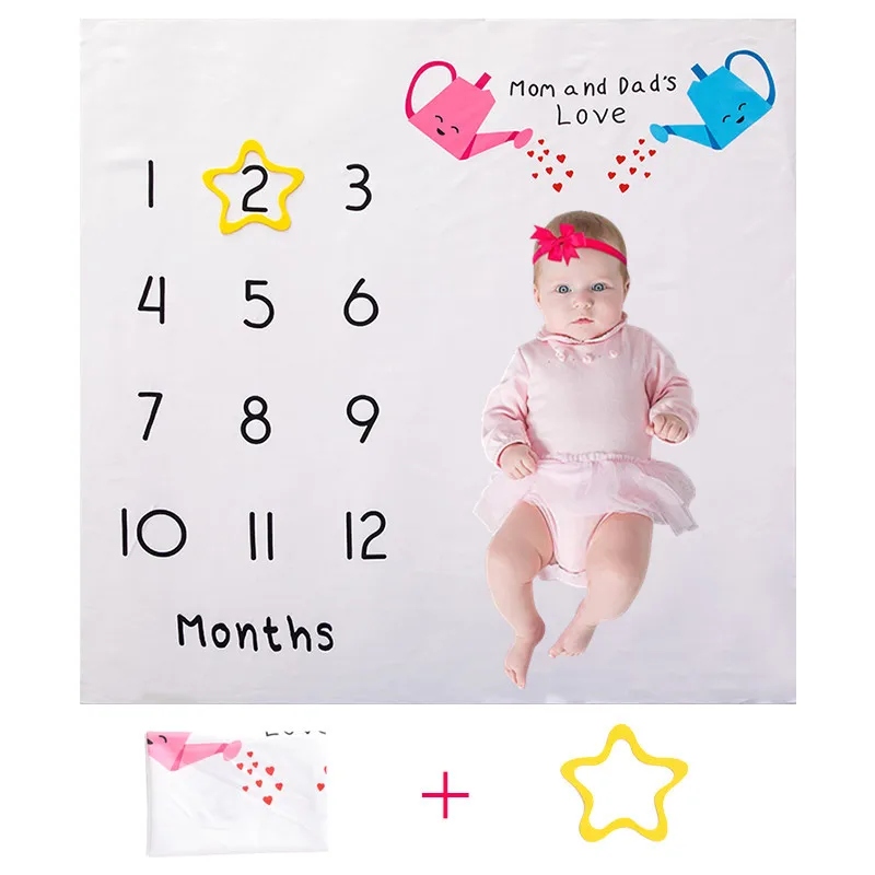 Baby Monthly Milestone Anniversary Blanket Newborns Photo Props Growth 100x100cm Souvenir Blanket Photograph Background Cloth