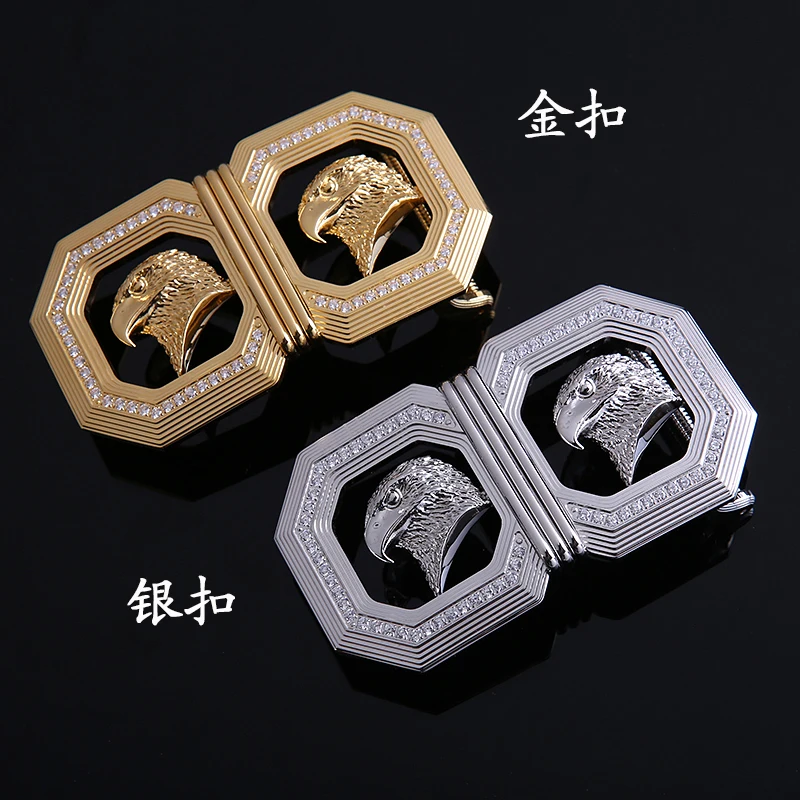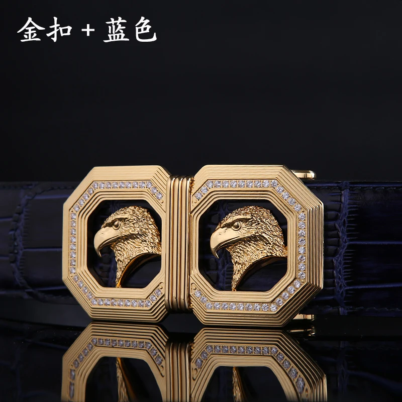 Fashion new style stfenvilict men's boutique belt, double eagle head style, steel buckle, four claw diamond inlaid, cowhide belt