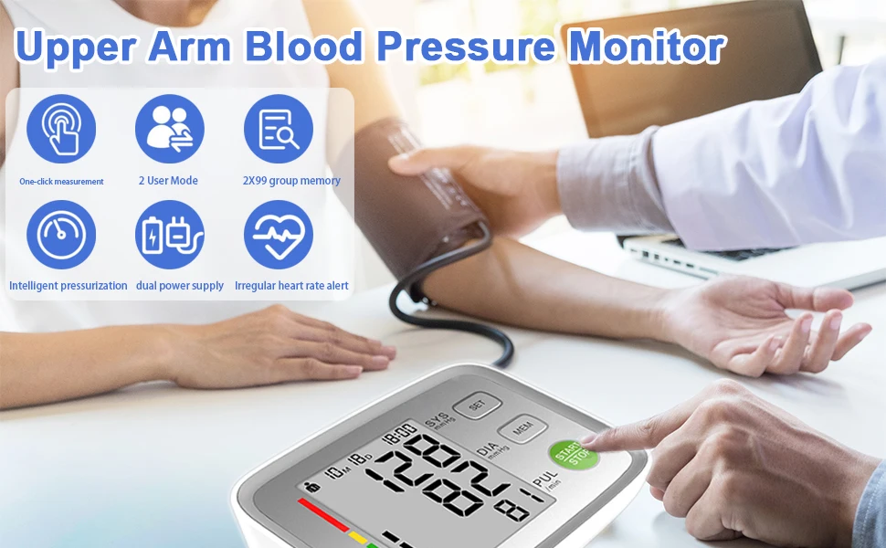Konsung SmileCare Blood Pressure Monitor Digital Sphygmomanometer BP Heart Rate Measurement Pulse Arm Tonometer Home Health