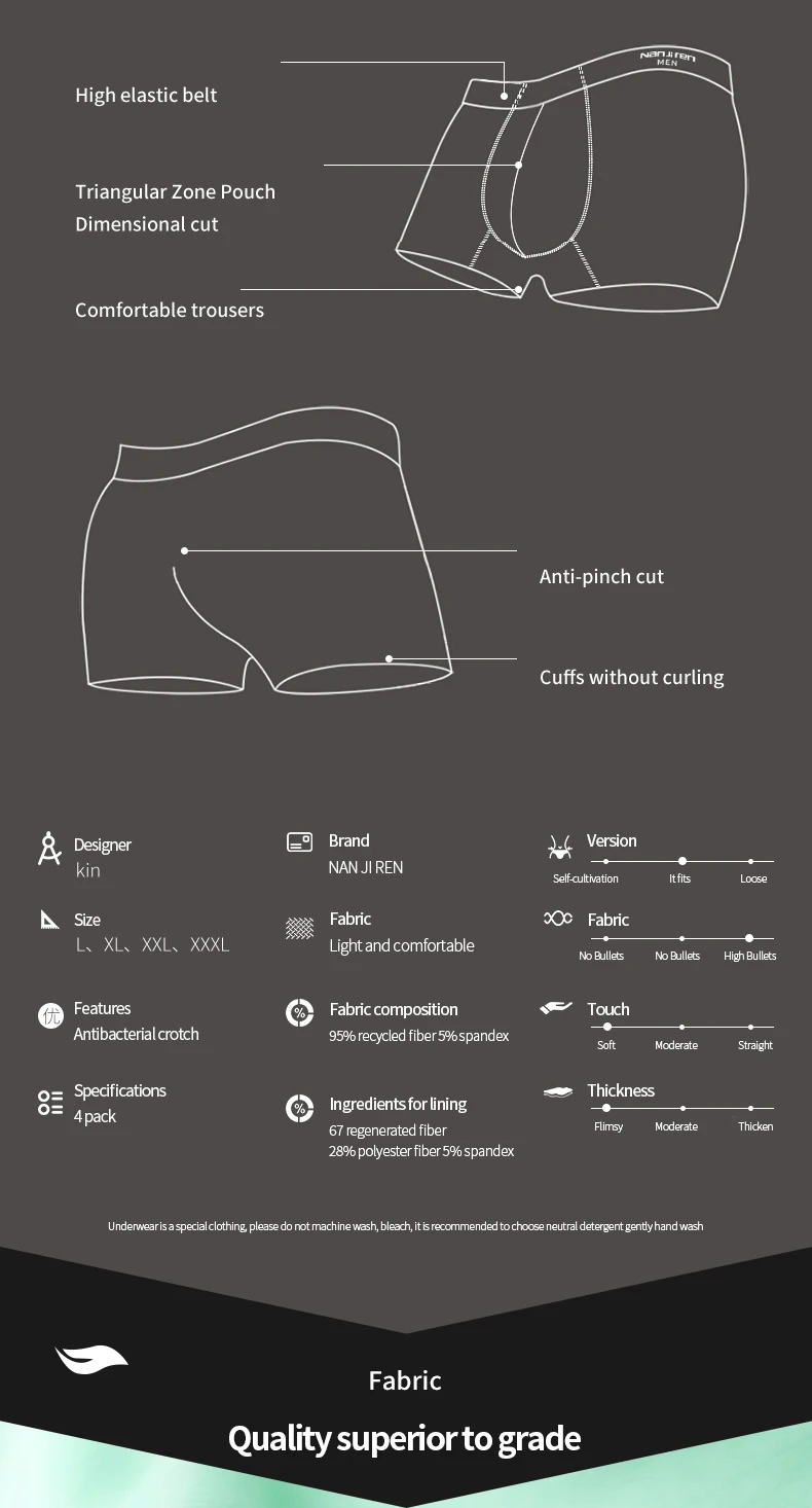 Nanjiren Men Underwear Graphene 3A Grade Antibacterial Boxer Ice Silk Solid Underpants Breathable Soft High Elsatic Male Panties