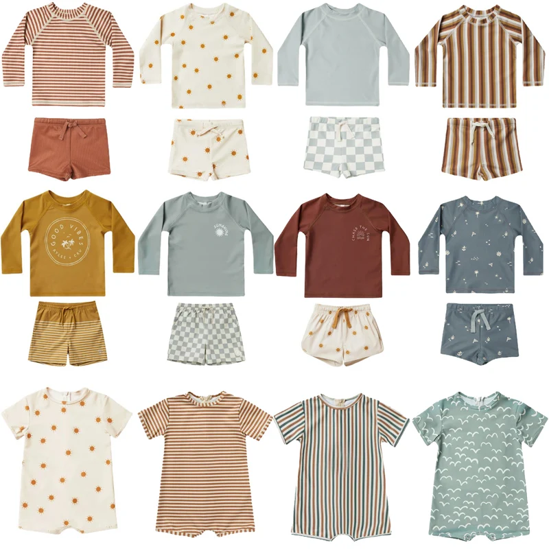 RC Baby Boys Swimwears 1-12Y New Summer Brand Kids Simple Floral Striped Pattern Infant Learning 2022 Swimming Bathing Suits