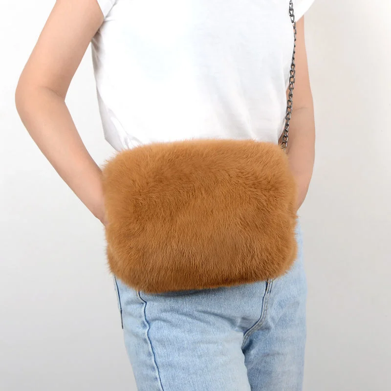 New Korean version winter rabbit hair bag real hair fashion portable diagonal span single shoulder chain bag women’s fur warm hand bag